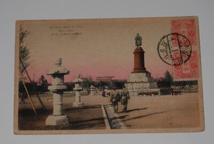 Japan Statue von Omura Tokyo Park Soldaten Vintage Farbe Postkarte