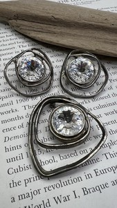 Vintage 80er Jahre Rivoli Schliff Kristall Brosche & Ohrringe Set Silberfarben Schmuck 🤍