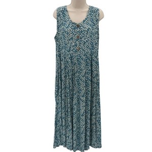 Tamba Tamba Damen Maxikleid türkis blau Batik Knopf ärmellos M/L