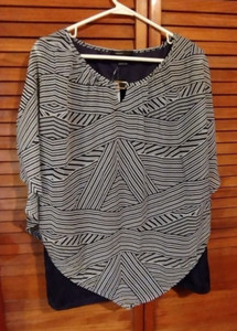 Neu mit Etikett Damenbluse marineblau mit marineblau gestreiftem Overlay Größe L Robert Louis CHF 12,77