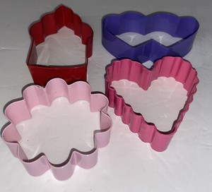 4 Metall Valentinstag Herz Cupcake Blumenform Ausstecher Set Liebe Rot Rosa