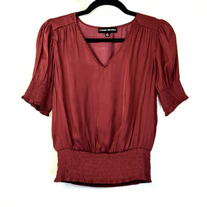 The Hanger Top Damen Gr. M Mauve Kurzarm V-Ausschnitt Schnürung Quaste Bindeband Tee Boho