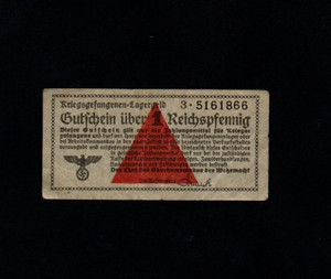 1 REICHSPFENNIG SS NOTE AUS NAZI KONZENTRATIONSLAGERN 1942-45 WW2