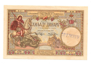 1000 DINARA SS ZEITGENÖSSISCHE GEFÄLSCHTE BANKNOTE AUS KÖNIGREICH JUGOSLAWIEN 1920 RAR