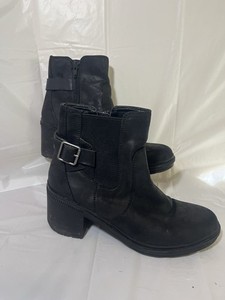 Bass Aspen schwarze Lederstiefeletten Größe 10 eckige Zehenpartie