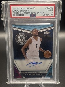 Mikal Bridges Auto 03/10 Blue Refractor 2023 Topps Chrome Mint PSA 9