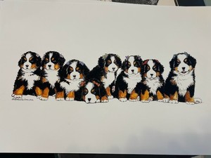 Berner Sennenhund Aufstellung Farbdruck Martha Van Loan Ltd Ed Schild 11x17