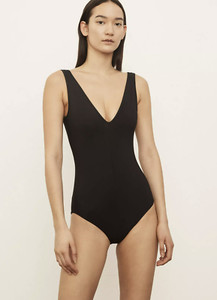 Vince Damen Nu Swim Cyn Anzug M schwarz ärmellos Plunge V-Ausschnitt hohe Beine