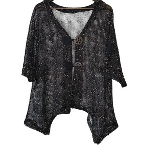 Vintage Spiegelbild schwarz Netz Netz Boho Knöpfe Festival Rave Cardigan Gr. 1X