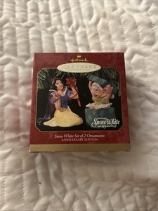 1997 Hallmark Snow White & Dopey Dwarf Set of 2 Ornaments Anniversary Edition