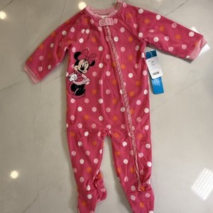 Disney Baby Minnie Mouse Schlafanzug 18-24M rosa gepunktet mit Füßen Pyjama Neu mit Etikett