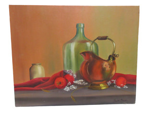 Vintage Ölgemälde Stillleben Realismus Kunst ungerahmt Leinwand Bild GLAUBE BAUER