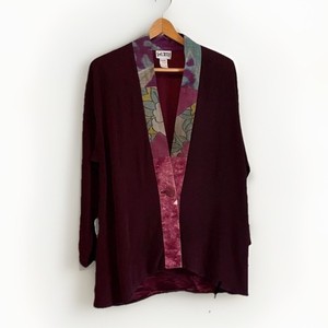 Yasuko Damen M Burgunderrot Vintage Kimono Seide getrimmt Staubtuch vorne offen Cardigan