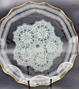 Clear Studios Kuchenplatte weiße Spitze mit Gold gewelltem Rand 10 1/2" Durchmesser