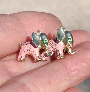 Rosa Elefanten goldfarbene grüne Augen Anstecknadel Brosche