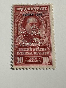 US Internal Revenue Stamp Scott # R353 - $10 Series 1942 Overprint Perfin Used