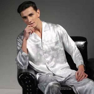 Men's Print 100% Mulberry Silk Pajamas Set Long Sleeves Silk Sleepwear S M L XL