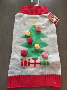 Petrageous GRAU ROT VERKLEIDUNG ""LKW MIT BAUM"" WEIHNACHTSPULLOVER Welpe/Hund MEDIUM NEU MIT ETIKETT CHF 14,71
