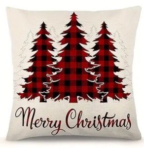 "WEIHNACHTSKISSENBEZUG Leinen 18""x18"" BÜFFEL KARIERT ""BÄUME"