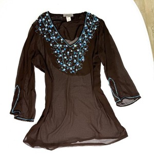 Vintage braun blau peppermintBay Langarm Perlen transparent Top