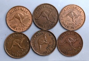 SIX Old AUSTRALIA Half Penny Coin Collection Lot SHOWING A KANGAROO (F5469)