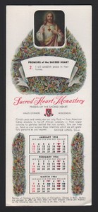 INK BLOTTER - SACRED HEART MONASTERY, HALES CORNERS WI - JANUARY/FEBRUARY 1955
