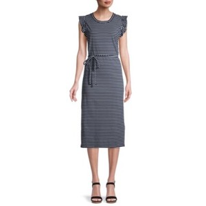 Time and Tru Damen Rüschenärmel Kleid, Koralle Feuer/Weiß Streifen, Große 12-14 CHF 17,03Bisher: CHF 20,04