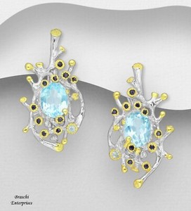 WUNDERSCHÖNE HANDGEFERTIGTE STERLINGSILBER OHRRINGE MIT ECHTEN EDELSTEINEN - NEU MIT ETIKETT CHF 124,67