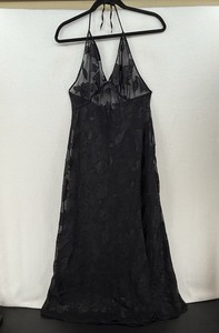 90er Y2K Anne Stuart transparentes schwarzes Blumen Burnout Dessous Neckholder Slip Kleid Gr. M