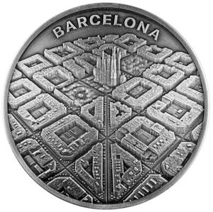 BARCELONA FROM DRONE’S EYE VIEW - 2021 2 oz reines Silber gewölbte Münze Kamerun