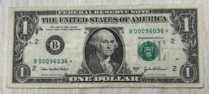 1 $ FRN Serie 2003 A STAR NOTE niedrig S/N - B00096036 * KEINE RESERVIERUNG