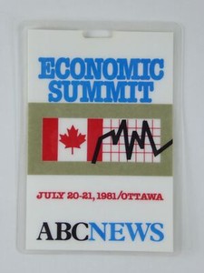 Ronald Reagan Vintage Presseausweis Wirtschaftsgipfel Ottawa Kanada 1981 G7 Thatcher