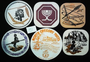 6 x Vintage drink coasters circa 1970s. Mixed themes including hotels (031)
