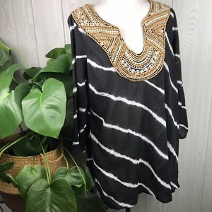 Gorgeous top, great condition, fit and fabric, love the beaded detail, picture does not do it justice, so much better than described, minor flaw detail that was pointed out by seller is so minor and fixable, great communication, timely delivery, very carefully packaged, thank you so much for a great purchase, Liz