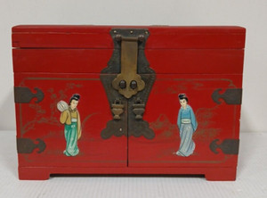 VTG Japanese Lacquer Mother Of Pearl Inlaid Vanity Box Jewelry Drawer 14”x 9”x10