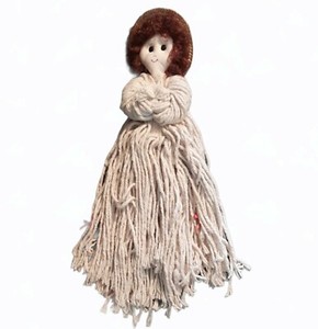 Moppkopf Stoffpuppe brünette Haare Strohhut 27 cm Landhausdekor Vintage