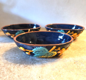 3er Set dunkelblau toskanische ovale Keramik Schalen Vino Bianco Trauben Design Keramik