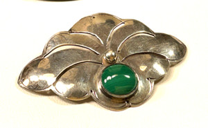 Sterling Anstecknadel Silber Künstler signiert Malachit Edelstein Brosche 8 Gramm