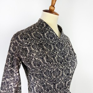 Vintage 50er 60er grau und schwarz Damast Gobelin Kleid Faltenrock Gr. XS