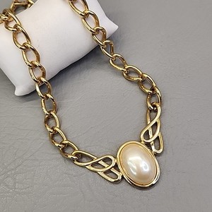 Vintage Napier Halskette goldfarbene Kette Perlenimitat Anhänger oval 18 Zoll