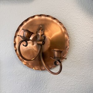 Vintage gehämmertes Kupfer Gregorianisches Kupfer Wandleuchter Handarbeit Kerzenständer