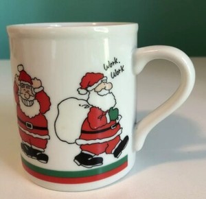 Vtg Papel “Happy Holidays” Christmas Santa Getting Dressed Coffee Mug Cup Japan