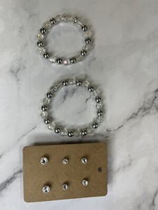 handgefertigte Perlen Ohrstecker und Armbänder Set klare facettierte Perlen und Silber