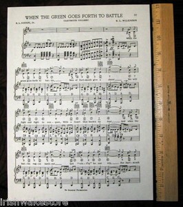 Students, alumni, fraternity and sorority brothers and sisters, and college sports fans of all ages absolutely LOVE school songs! Whether it’s the stirring strains of a beloved Alma Mater or the rousing fanfare of the fight song, just a few notes is enough to get feet tapping, hands clapping, hearts swelling, even tears rolling. In this eBay store you will find vintage and antique printed song sheets from hundreds of colleges and universities coast to coast. You’ll find school anthems, fraternity songs, marches, historic ballads, alma maters, drinking songs and fight songs ... please use the search box in the store home page to look for any school or song. We have song sheets from as far back as 1901! All of them are originals, cut straight out of vintage or antique songbooks. The page sizes and song length vary, so please read the description carefully to know exactly what you’ll be receiving. By all means, contact irishwakestore@gmail.com with any q’s or special requests!