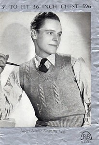 ~ Vintage 1930/40er Jahre P&B Strickmuster für Herren V-Ausschnitt Zopfmuster Tank Top ~ 36" ~ CHF 2,05