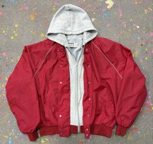 Vintage 1980er Swingster Bomber Nylon Jacke mit Hoodie Futter Gr. XL Made in USA rot
