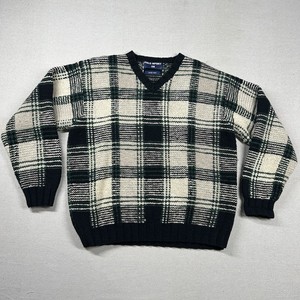 Vintage Polo Sport Pullover Herren L Handstrick Tartan Wolle Leinen 90er Retro Grobstrick
