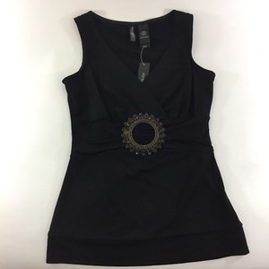 Bisou Bisou XS Black Gold Sparkle Glitter Sleeveless Top Ruched Waist NWT
