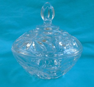 Anchor Hocking frühe amerikanische VORGESCHNITTENES Klarglas 5 1/4" bedeckt Süßigkeitenschale EAPC CHF 3,97