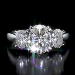 4,0 kt Ovalschliff Moissanit Dreistein Verlobungsring in 14 kt Weißgold plattiert
